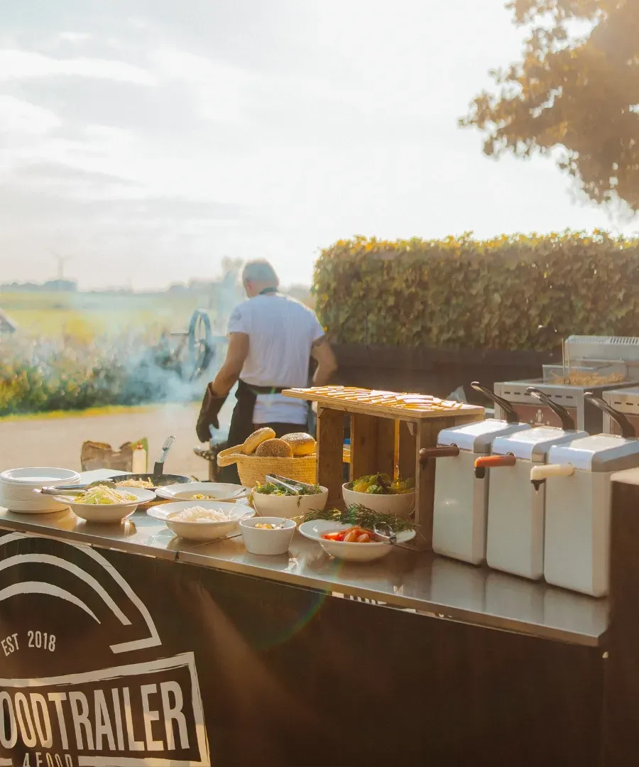 - Meenemen van foodtrucks van derden is mogelijk voor een sta-vergoeding van €750,- per dagdeel op het terrein van Fries & Fruitig. Voor bovenstaande foodtrucks geldt dit tarief niet.
