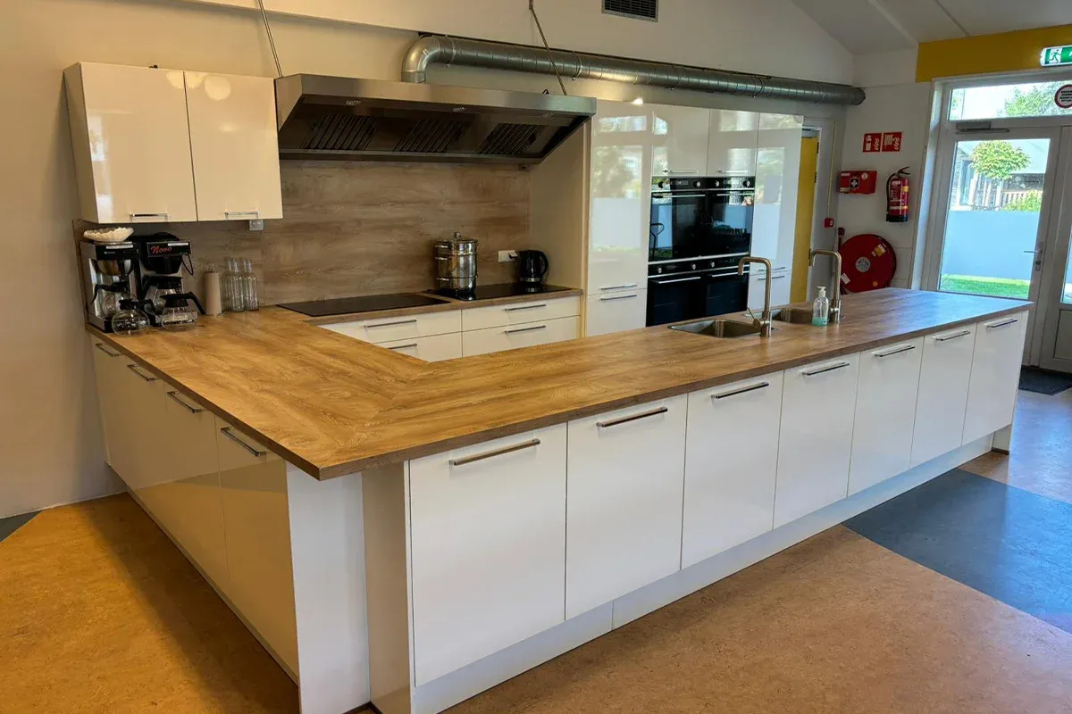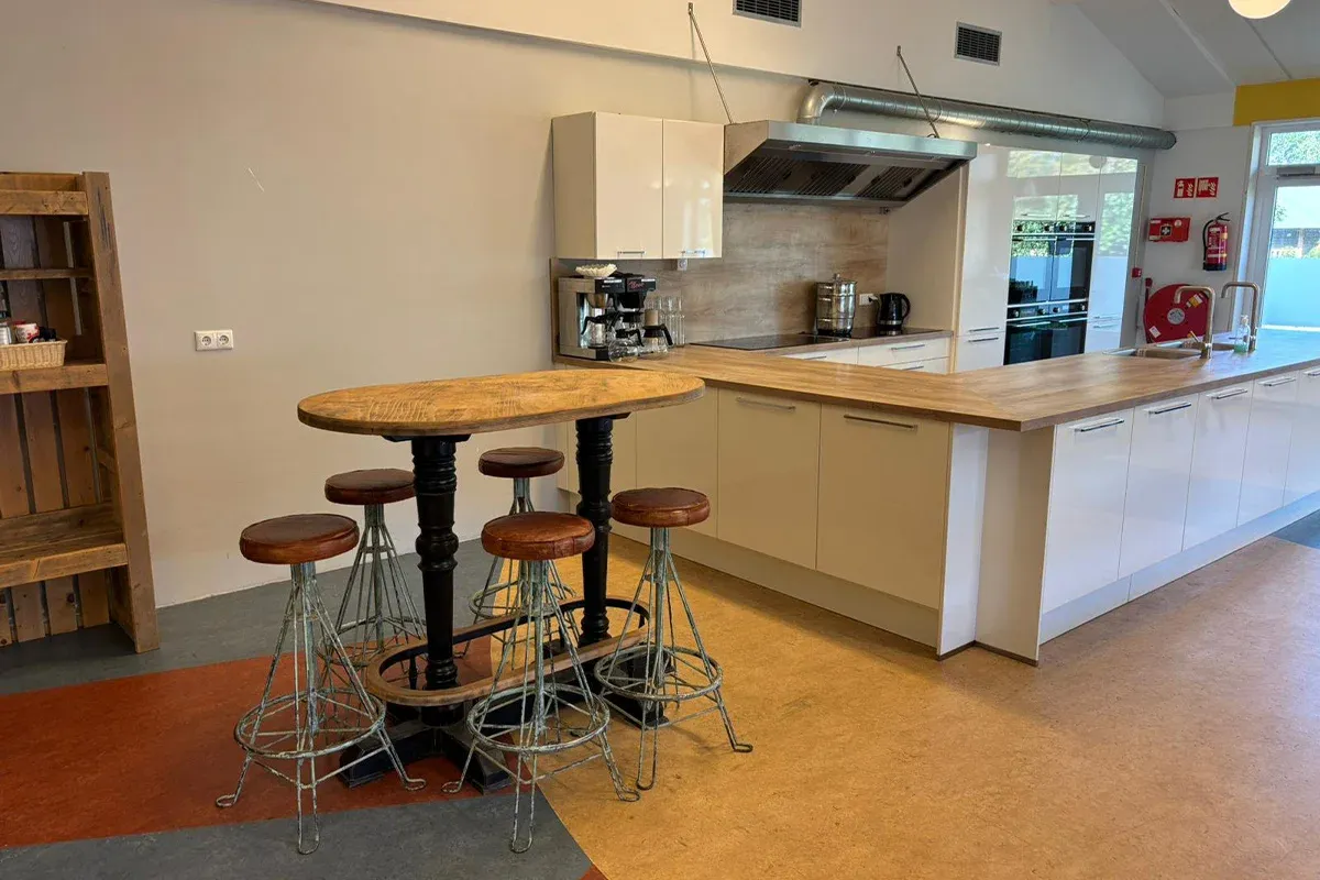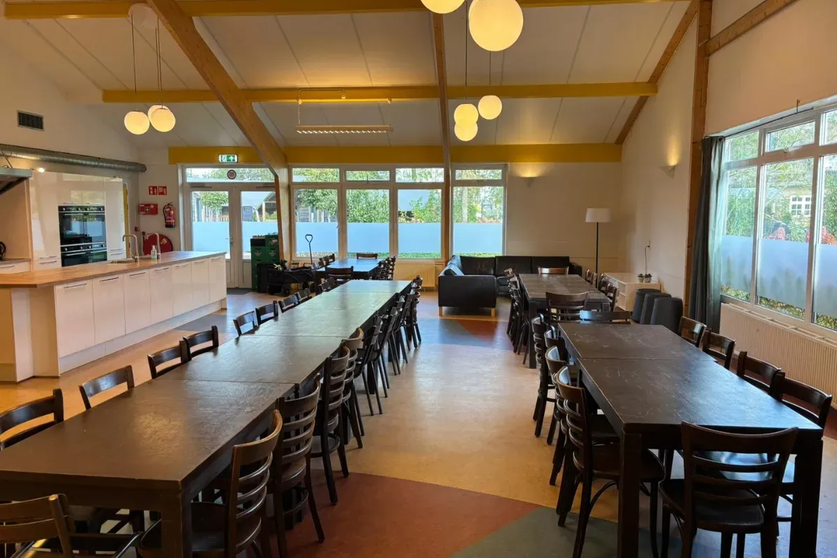 De accommodatie bestaat uit meerdere gebouwen, elk met een eigen karakter. Je kunt ze afzonderlijk gebruiken, ze zijn ook perfect te combineren tot één grote, gezamenlijke locatie. Zo ontstaat een flexibel geheel dat precies aansluit bij de wensen van jouw groep. Binnen vind je kamers van verschillende groottes, allemaal voorzien van eigen sanitair. Dat betekent comfort en rust voor iedereen, ook bij grote groepen. Elk gebouw beschikt over een eigen keuken en een gezamenlijke ruimte, waardoor je zowel intieme hoekjes als grote ontmoetingsplekken hebt.