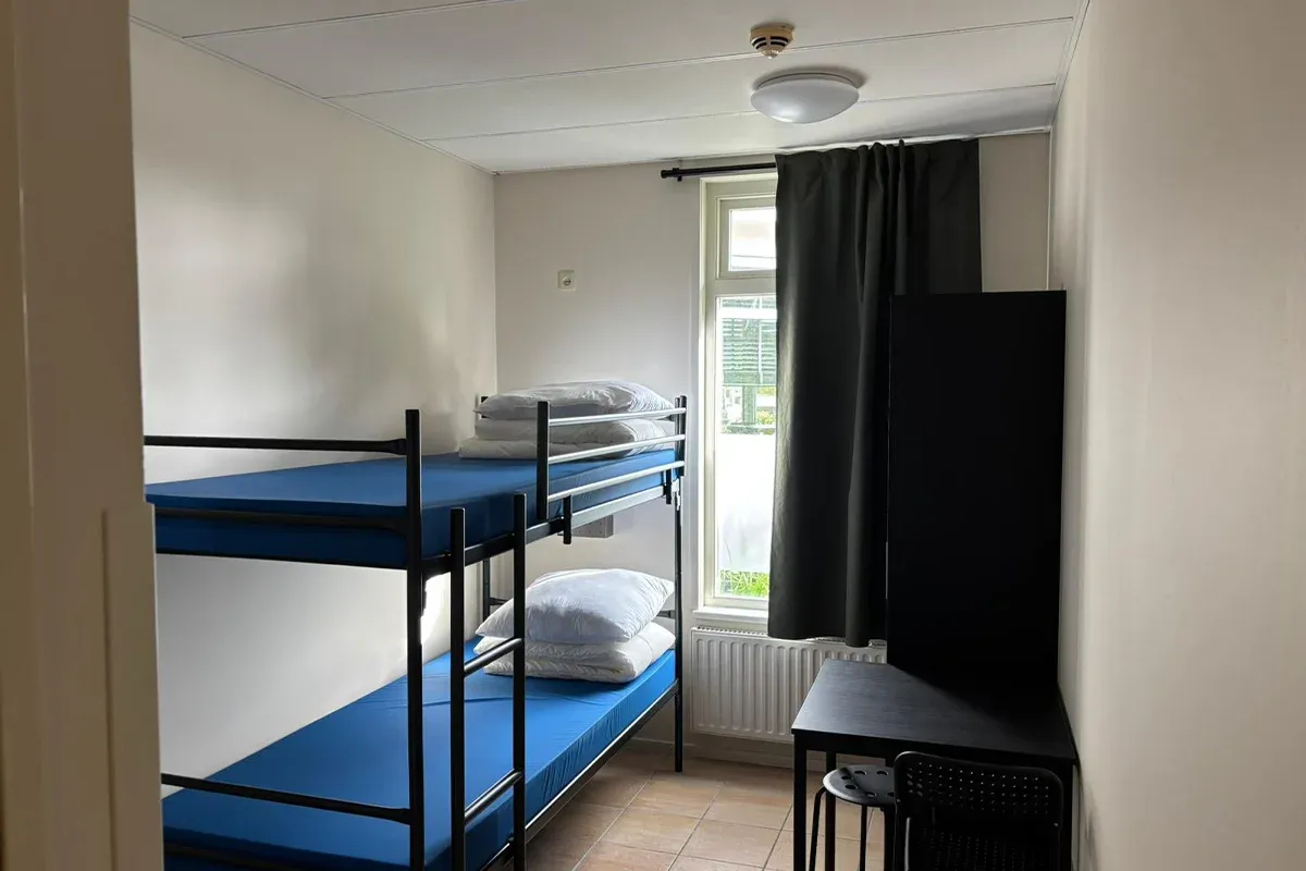 - Kamer 1 heeft twee stapelbedden, een wastafel, inbouwkast en een kapstok.