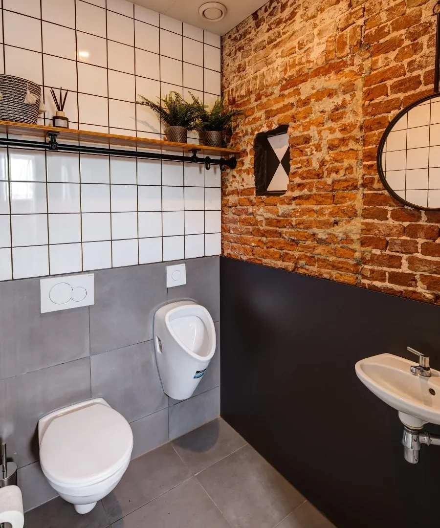 - Heren sanitair watersporthostel: 2 urinoirs, 2 toiletten, 2 douches, 3 wastafels