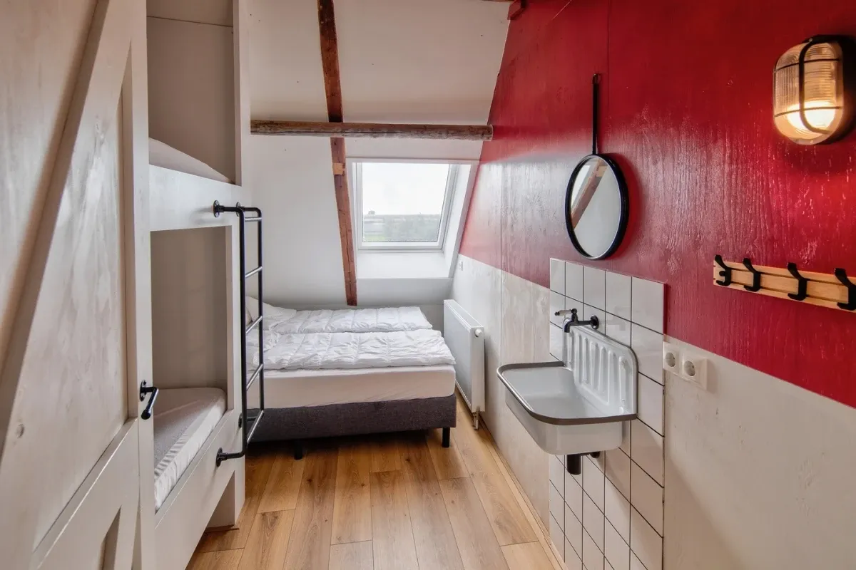 - Standaard op alle bovenstaande slaapkamers aanwezig: Wastafel, Spiegel, Opbergruimte voor tassen en/of koffers, Kastje voor tandenborstels en/of toiletartikelen, Velux dakraam verduistering
