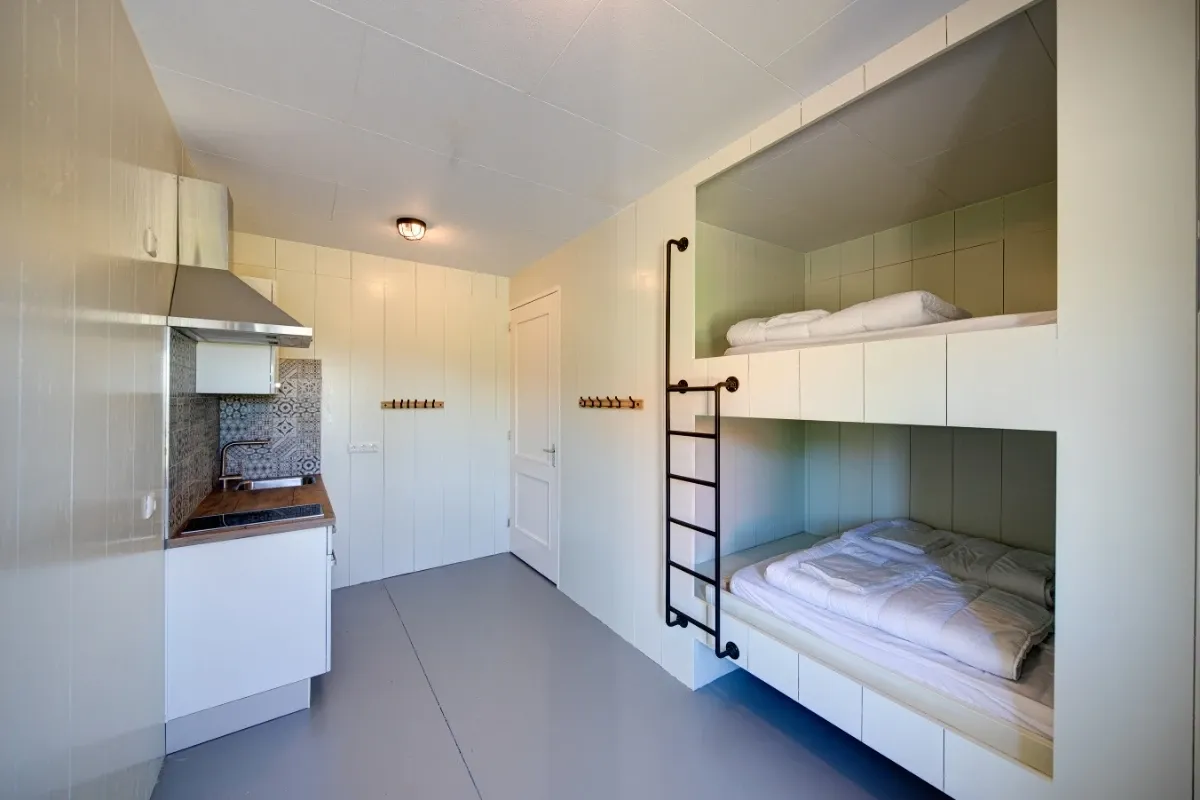 - Kamer 2: 4 persoons appartement Appel = 2 x 2-persoons bed (inclusief keukenblok en toilet, wastafel, douche)